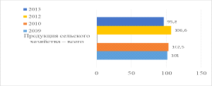Как видно из рисунка 3.1, в 2013 году производство сельскохозяйственной продукции не превысило выпуска сельскохозяйственной продукции в 2012 году, что может существенно повлиять на выполнение программы.