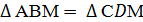 знаходимо таку точку на прямій ВМ, щоб і Тоді за другою ознакою рівності