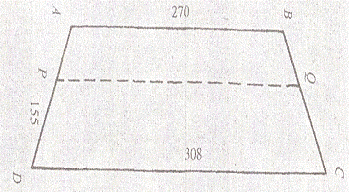де а і b - довжина і ширина сторін прямокутника. Учні повинні розуміти, що для того, щоб обчислити житлову площу квартири, треба знайти площу кожної кімнати. Щоб дізнатися, скільки квадратних метрів обштукатурив штукатур, пофарбував маляр, треба визначити площу стіни, стелі, дверей, вікон, підлоги тощо, а вони, за деяким винятком, мають форму прямокутників. Щоб побудувати математичну модель подібної задачі школярі повинні добре володіти основним матеріалом з даної теми. Але не кожному учневі це під силу, тому вчителеві часто доводиться наштовхувати учнів на правильний хід думок. Зрозуміло, що площі полів, підлоги, стін, стелі та інших подібних об’єктів на практиці обчислюють наближено, інколи навіть «на око». Непогано, якщо й учні матимуть у цьому хоч деякі навички, наприклад, зуміють «прикинути», яка площа класної кімнати, спортивного майданчика, футбольного поля тощо, тому при прогулянках чи екскурсіях, для кращого розвитку розумової діяльності учнів, потрібно тренувати навики учнів шляхом наближеного вимірювання площ. Слід звернути увагу учнів на те, що в польових умовах далеко не завжди можна вимірювати і обчислювати площі так, як це робиться на папері. Якщо, наприклад, на полі, що має форму трапеції, колоситься пшениця, топтати її, щоб виміряти безпосередньо висоту цієї трапеції, ніхто не буде. І якщо на аркуші паперу легко визначити точку перетину двох будь-яких непаралельних прямих, то в польових умовах це зробити нелегко, а інколи неможливо. Вимірюючи площі земельних ділянок, звичайно йдуть по контуру. Для вимірювання найчастіше користуються польовим циркулем, значно рідше - кутомірними інструментами. Клас задач, що розв’язують землеміри-обліковці, набагато ширший. Розглянемо конкретну задачу. Від поля ABCD, що має форму майже рівнобічної трапеції (рис. 1.10), треба відміряти його частину ABQP також у формі трапеції, щоб її площа дорівнювала 1 га.