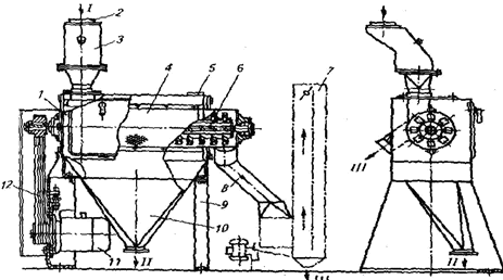 воздуховода; 6-бичевой ротор; 7 - пневмосепаратор; 8-выпускной патрубок; 9 -
