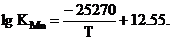 зависимость константы равновесия от температуры для второго уравнения: