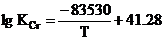 константы равновесия от температуры для второго уравнения