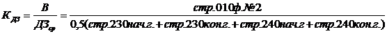 ДЗср - средняя величина дебиторской задолженности, тыс. руб.(по строкам 230 и 240 баланса).