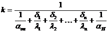 λ1, λ2,…, λn - коэффициент теплопроводности материалов соответствующих слоев ограждений, Вт/(м2·оС).