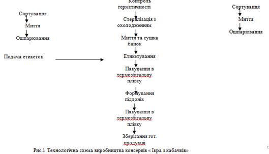 Технологічна схема виробництва консервів „Ікра з кабачків”