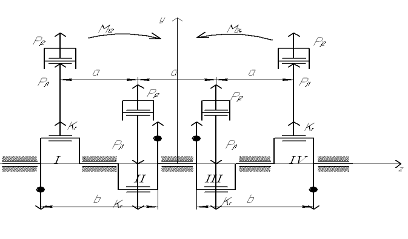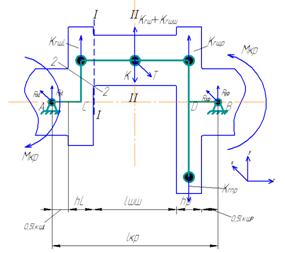 ΣМВ=( Kr щP- Kr пр)∙ 0,5(lкшP+hP)+ ( Kr ш+ Kr шш)∙ (0,5 lкшP+ hP+0,5 l шш)- Кmax(0,5 lкшP+ hP+0,5 l шш)+ Kr щL∙(0,5 lкшP+ hP+ l шш+0,5 hL)+RyA∙ l кр=0