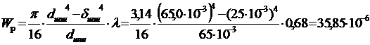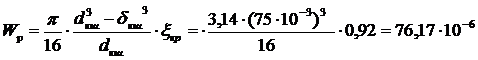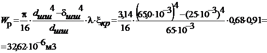 Момент сопротивления кручению шатунной шейки равен: