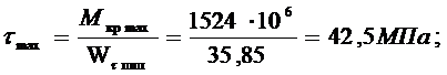 где: (К)д= 3,4 - эффективный коэффициент концентрации напряжений при кручении(r/dкш=5/75) ;