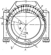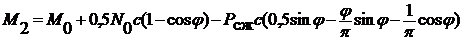 Определим момент M2 и силу N2 в сечении C-C (см. рис. 11, приняв α0=40, φ= 130º). Подставив значения величин в уравнение, получим M2 =96,61 Н·м, N2 =8765,12 Н.