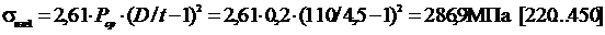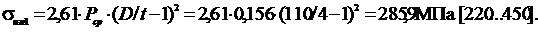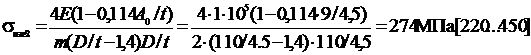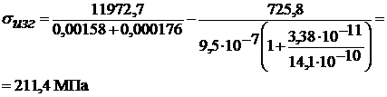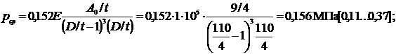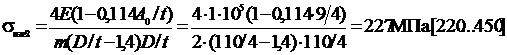 где Е - модуль упругости;D = 110 мм - диаметр цилиндра; t = 4 мм - ширина кольца; А0 = Δс - Δр=9 мм; Δс и Δр - зазоры в свободном и рабочем состоянии.