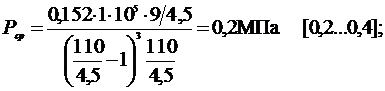 Среднее радиальное давление кольца на стенку цилиндра (маслосъемное кольцо):