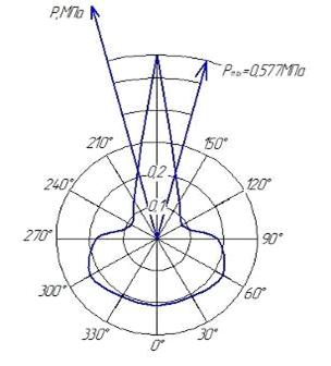 Рис.21. Эпюра давлений маслосъёмного кольца на стенку цилиндра