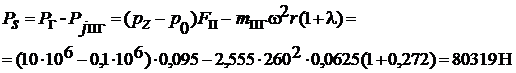 где mпг - масса поршневой группы (без массы поршневого пальца); ωххmax= (πnххmax)/30 - угловая частота вращения коленчатого вала на режиме холостого хода при максимально допустимой nххmax; r - радиус кривошипа; λ=r/lш; lш - длина шатуна.