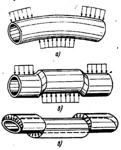 Рис.14. Виды деформаций поршневого пальца: а - изгиб в продольном направлении; б - срез; в - овализация