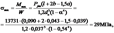 Для данной схемы нагрузки напряжения изгиба (в центре поршневого пальца)