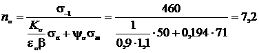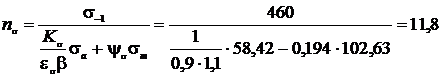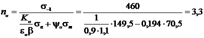 Далее определяют запас прочности при переменных напряжениях по формуле