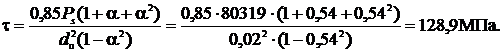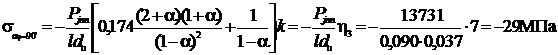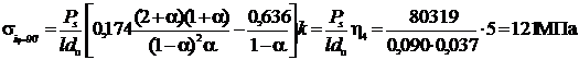 При действии суммарной силы Ps = 28239 Н находим напряжения: