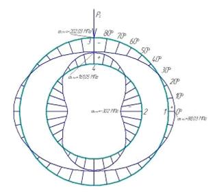 Запасы прочности определим в т.2 и т. 4, так как в точке 2 напряжение частично уравновешиваются напряжением от газовой нагрузки, а в точке. 4 напряжения суммируются.