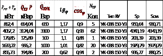 Предусматриваем установку КУ на цеховых подстанциях с подключением их к шинам НН. Предусматриваем на заводе установку 5 КТП напряжением 10/0,4 кВ.