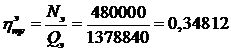 КПД турбоустановки по производству электроэнергии: