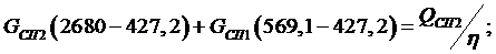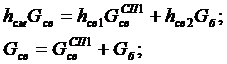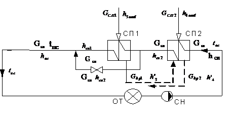 расход сетевой воды в байпас и через СП1, составив систему для точки смешения: