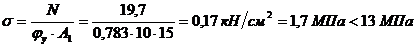Вывод: сечение стойки 100х150 древесины хвойных пород второго сорта, установленных с шагом 650 мм, полностью удовлетворяет условию прочности.