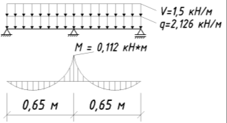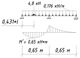 Максимальный изгибающий момент находится над промежуточной опорой: