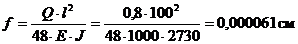 Прогиб от сосредоточенной нагрузки Q=0,8 кН (80 кгс):
