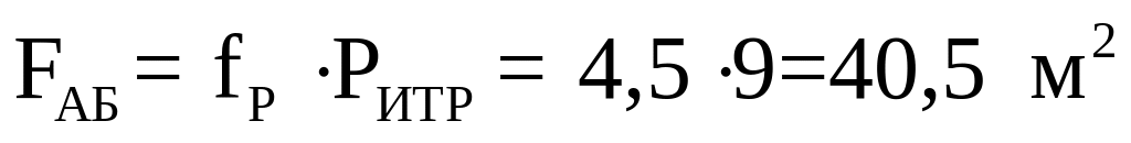 Площадь административно-бытового корпуса определяется по формуле