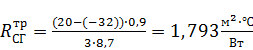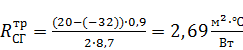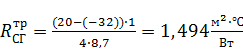 Где R-термическое сопротивление теплопередаче ограждающей конструкции, м2·оС/Вт.