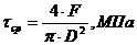 τ’ср=F/A=F/(0,7