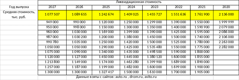 Ликвидационная стоимость (на 2024 год т.к. СПИ составляет 3,73 года) |