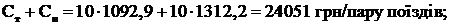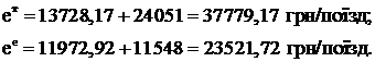 Сумарні витрати по пробігу одного поїзда з урахуванням витрат електроенергії та палива для тепловозної та електричної тяги відповідно складають: