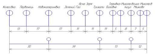 - ділянкова швидкість, км/год.;