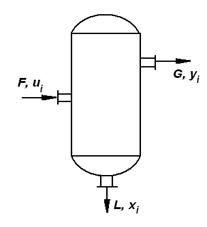 где ui, x1, yi - мольные доли i -го компонента в исходном потоке и полученных жидкой и паровой фазах соответственно.