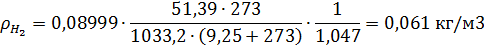 Тогда плотность водорода при рабочих условиях (5,04МПа (51,4 амт.), 9,25 °С (282,25 К)) составит: