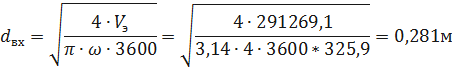 Расчет внутренних диаметров входного и выходных патрубков