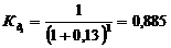 где К - темп изменения ценности денег, К = 0,13;