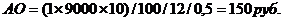 АО - амортизационные отчисления, руб.;