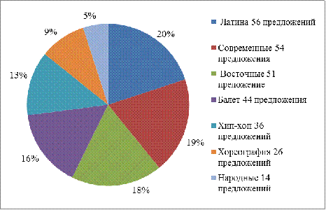 самым популярным предложением является танцевальное направление -