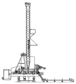 Согласно справочным данным [3], для конкретных условий можно выбрать буровую установку БУ-2900/175 ЭПК, предназначенная для кустового бурения скважин. Буровая передвижная блочно-модульная вышка для бурения нефтяных и газовых скважин в неосвоенных районах, восстановления старых скважин путем бурения вторых горизонтальных стволов. Мачта А-образная секционная свободностоящая без оттяжек, со встроенными маршевыми лестницами и механизмом подъема.