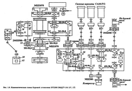 Рис. 2.10 - Кинематическая схема БУ Уралмаш 4Э-76