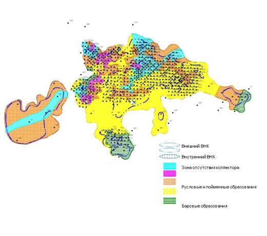 а также прослеживается в северо- и юго-западной частях залежи.