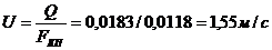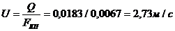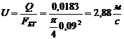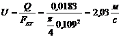 скорость течения жидкости внутри труб (кольцевого пространства) по формуле: