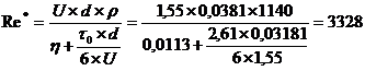При Re*>2000 режим течения считается турбулентным, а при Re*<2000 -структурным. Коэффициент гидравлического сопротивления λ рассчитывается по формулам (2.45)-(2.46) [8], в зависимости от значения Re*.