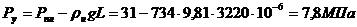 на глубине 3220 м =45,49 МПа: