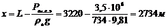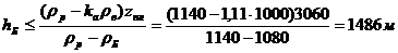 1486 м, мы можем выбирать высоту столба буферной жидкости в