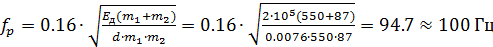 0,008(1-0,05) = 0,0076 м. Находим частоту резонанса конструкции по форму- ле: