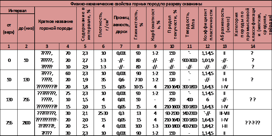 горных пород по разрезу скважины». с учетом льдистости для ММП.