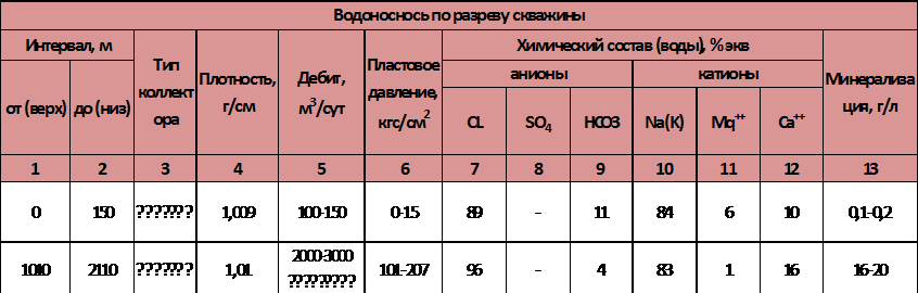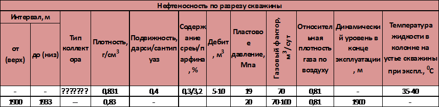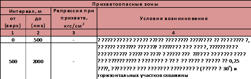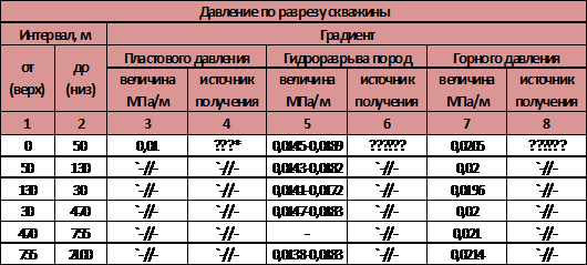 Градиенты давлений, определенные по указанной методике, указаны в таблице «Давление по разрезу скважины».